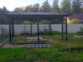 На готовые опоры привариваем металлические лаги, на которые впоследствии монтируется профлист.
