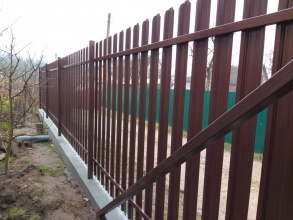 Компания «АрсеналЗаборов» производит установку под ключ забора из металлического штакетника на ленточном фундамента. Надежные материалы и проверенная годами конструкция обеспечивает долговечность ограждения.