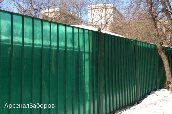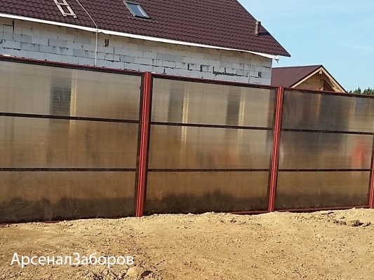 Компания «АрсеналЗаборов» предлагает надежные и долговечные ограждения из поликарбоната для загородного дома и дачного участка. Данный забор не боится осадков, не затеняет участок, имеет эффектный внешний вид. Листы из синтетического полимера прекрасно сочетаются с традиционными строительными материалами, что позволяет воплотить любой дизайнерский замысел. Узнать стоимость забора или оформить заказ Вы можете в режиме онлайн.